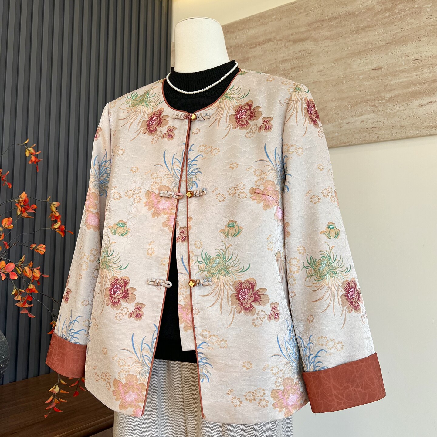 春秋季 妈妈装 圆领长袖 开衫 百搭外套 时尚 中老年女士新中式 洋气新款