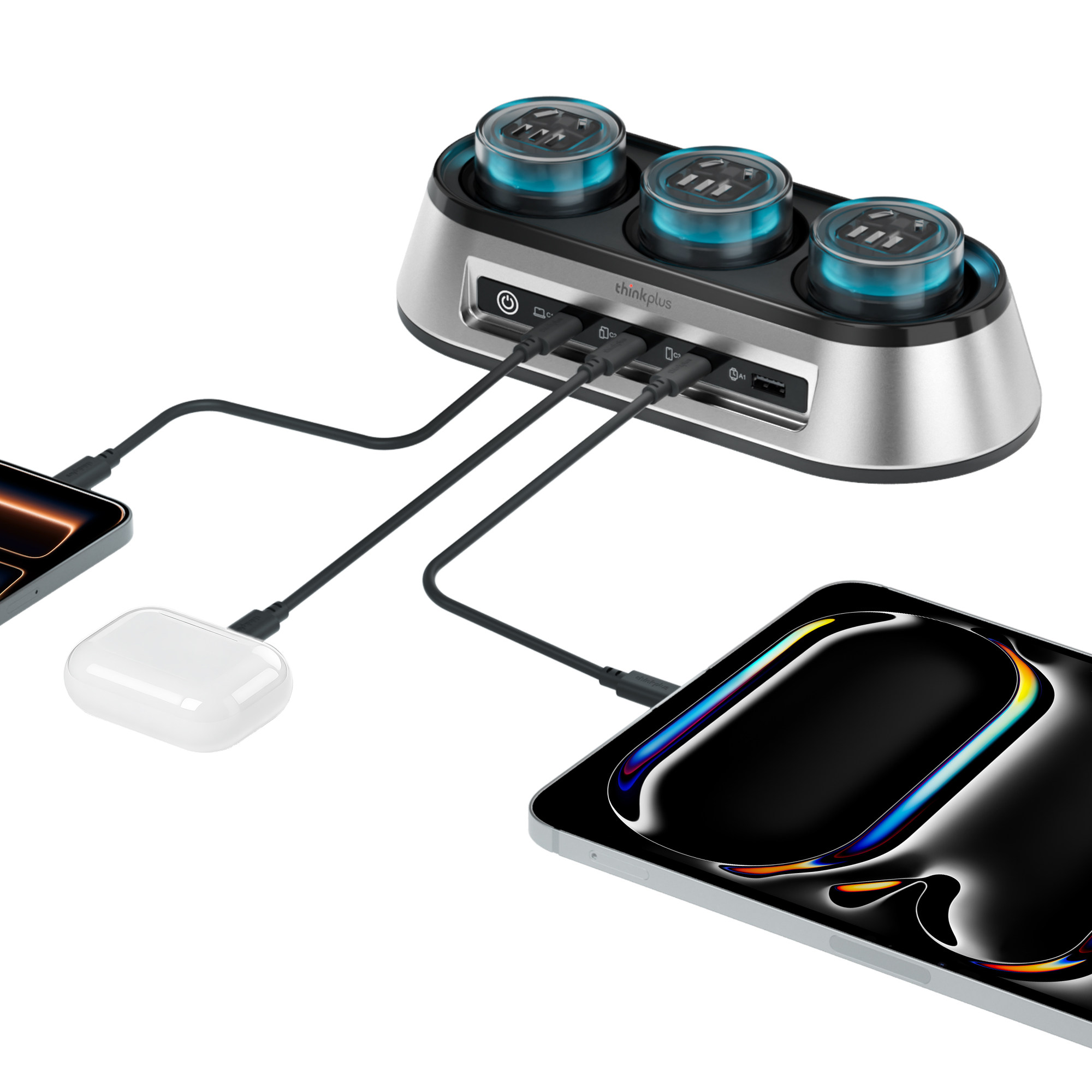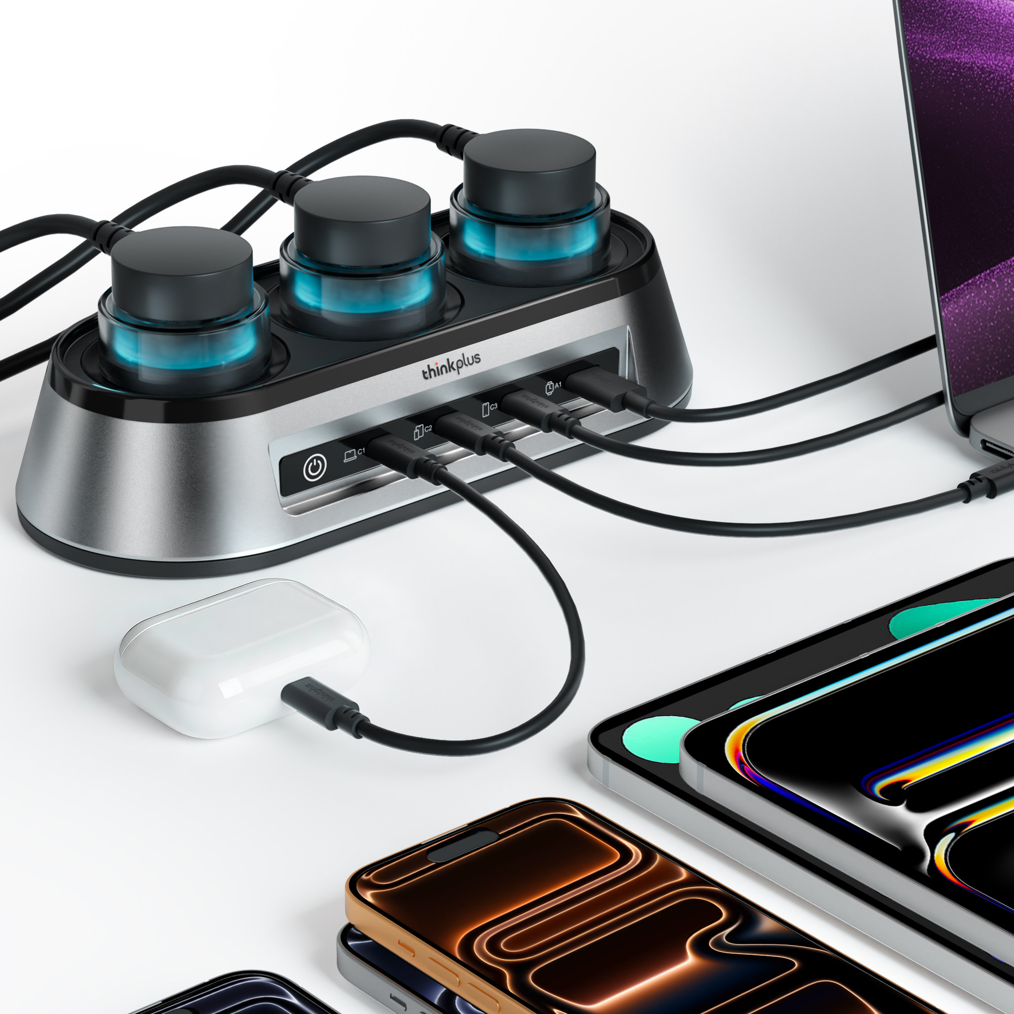 联想ThinkPlus锋行者氮化镓150W桌面充电站器typec多口排插接线板PD快充适用苹果MacBook笔记本 旗舰新品