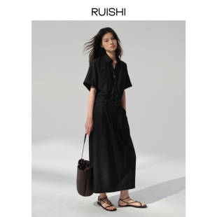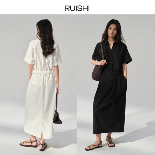 系带显瘦通勤衬衫 RUISHI芮时 短袖 经典 连衣裙女夏 柔权主义
