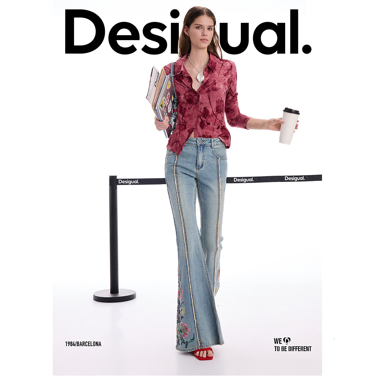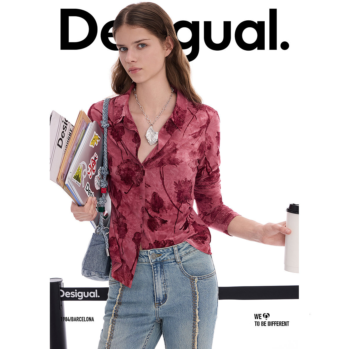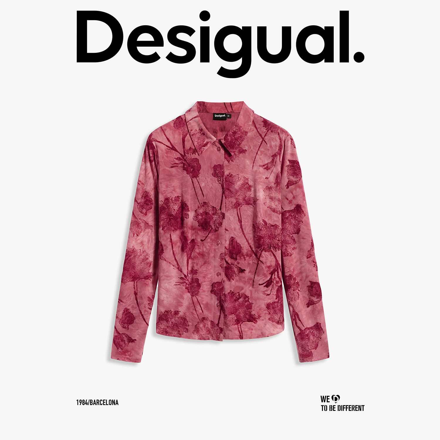 衬衫 Desigual26春夏新品 女式 扎染印花植绒翻领长袖 弹力修身