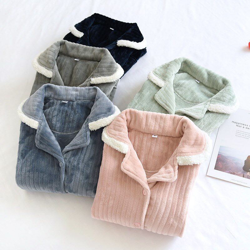 珊瑚绒睡衣女单件上衣秋冬加绒加厚宽松保暖春秋法兰绒家居服上装