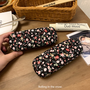 复古国风田园小清新碎花棉布艺眼镜盒小巧便携可爱轻便防压收纳盒