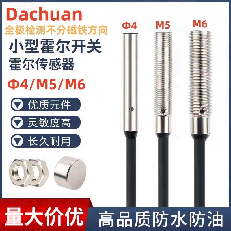 4mm霍尔接近开关微型全极检测直流三线24v磁铁霍尔传感器PNP常开