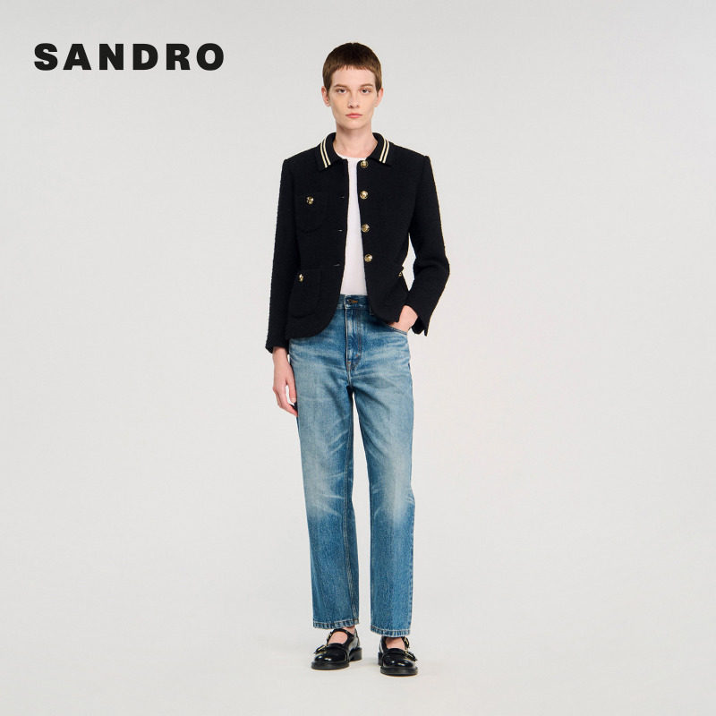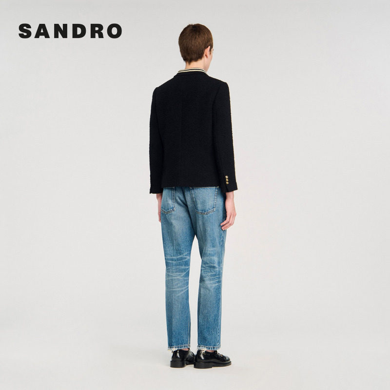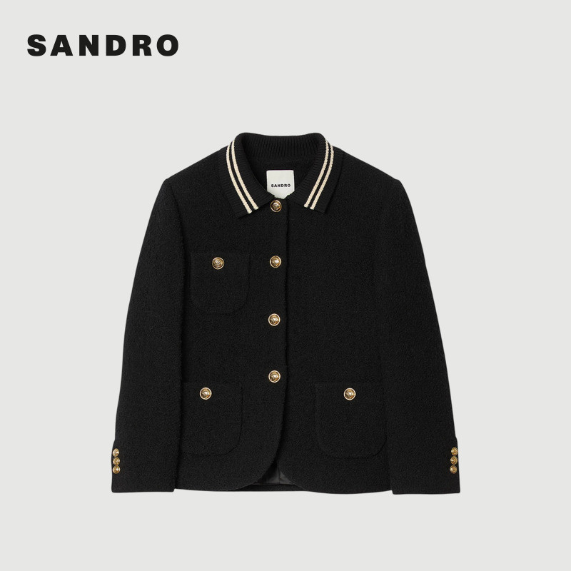 黑色针织条纹短款 季 时尚 法式 花呢外套 末7折SANDRO2025秋冬女装