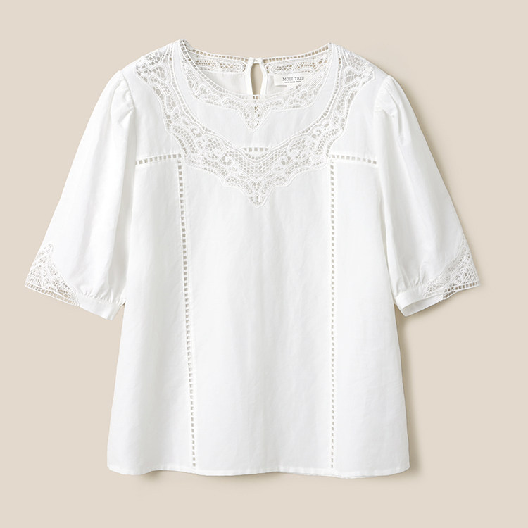 WCS08085 衬衫 茉莉雅集 圆领重工刺绣中袖 女 干爽透气汉麻棉法式