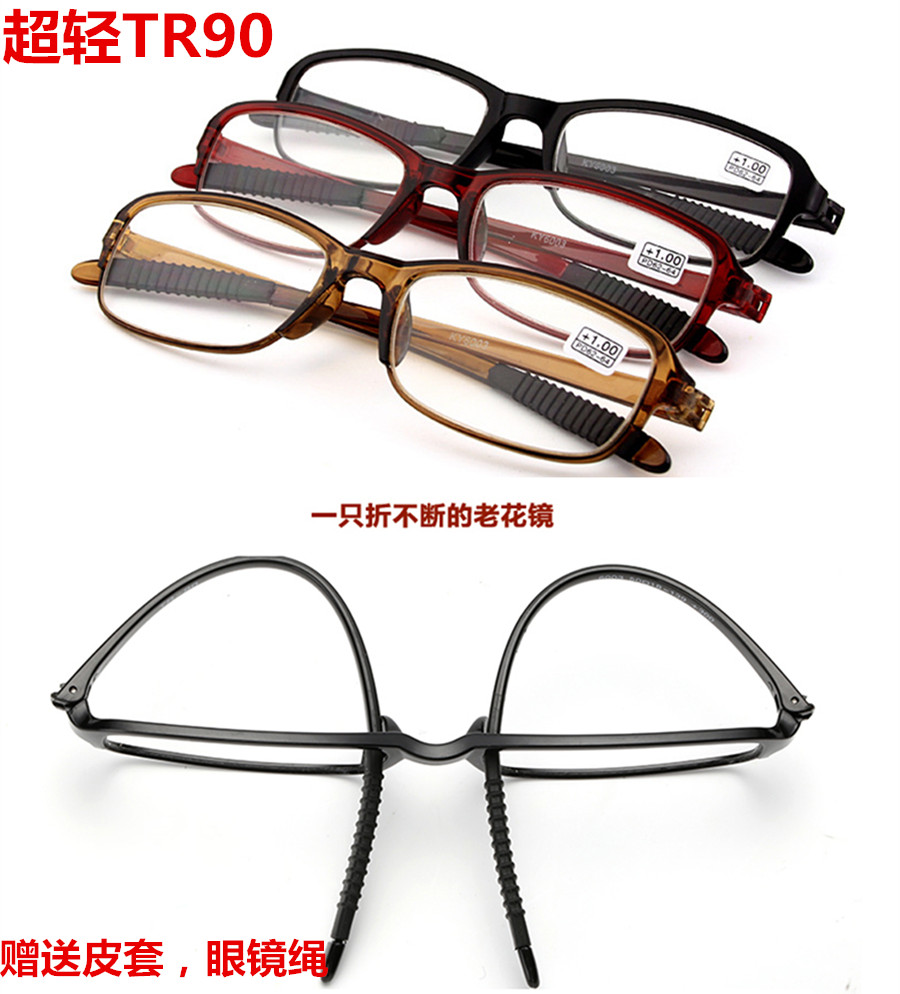 TR90老花眼镜超轻舒适非球面树脂150 250300度简约男女老光镜 200