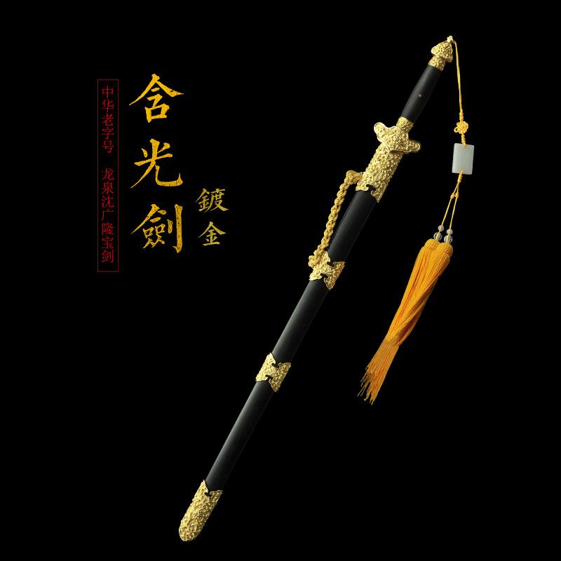 镀金 手工传统收藏剑 清式 龙泉沈广隆宝剑 未开刃 宝剑 含光剑