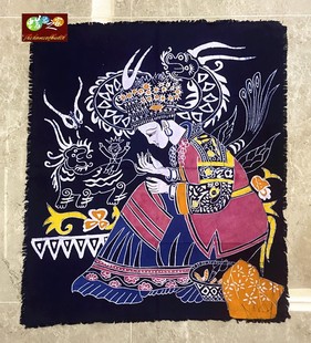装 民族特色蜡染 饰壁挂 苗女绣花 蜡染画 贵州苗族手工蜡染