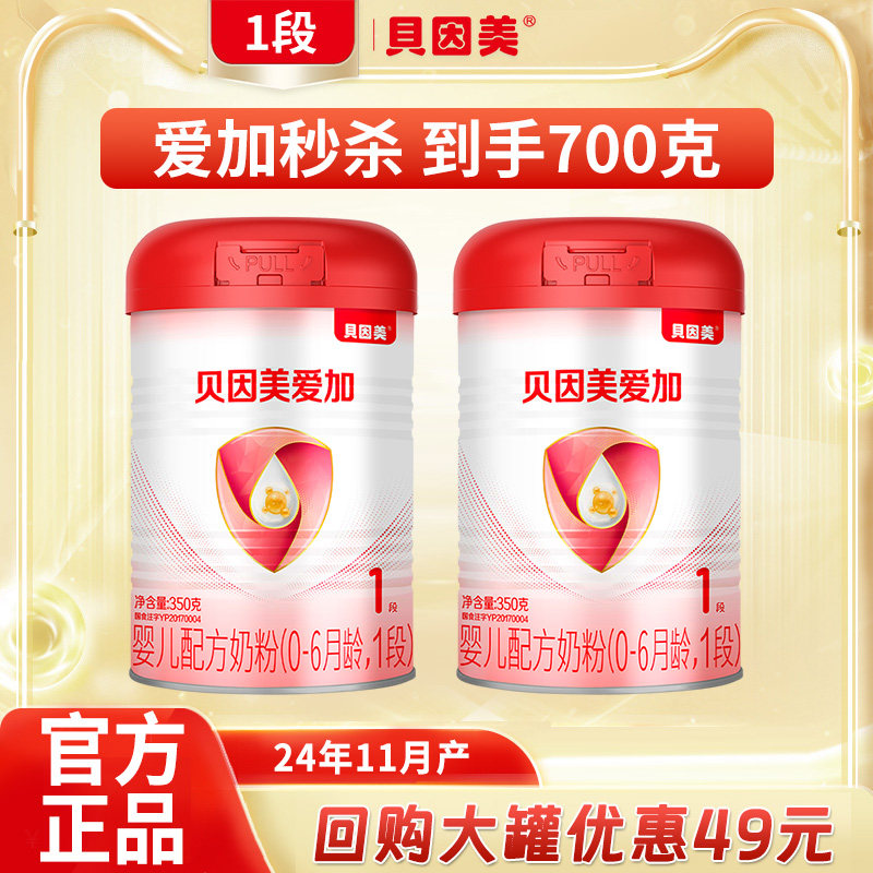 6个月婴儿幼儿配方奶粉官方正品 贝因美爱加1段350g 2罐一段0