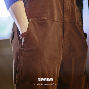 阿美咔叽宽松直筒吊带连体裤 复古灯芯绒背带裤 男秋 美式 马登工装