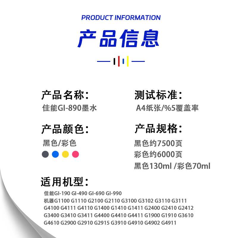 适用佳能G3800墨水G3810墨仓G4810 890补充墨水 G4800打印机GI