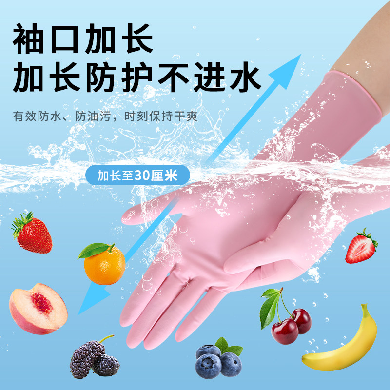 家用丁腈手套加厚加长防水食品级家务干活搞卫生做饭厨房洗碗耐用