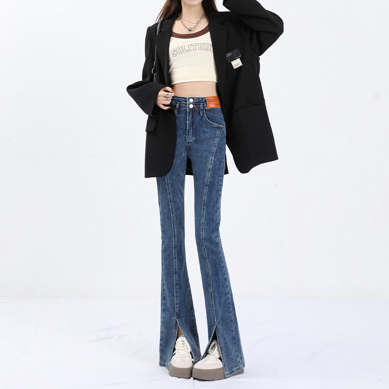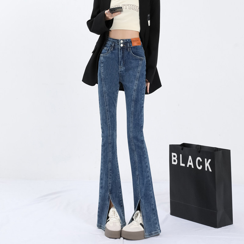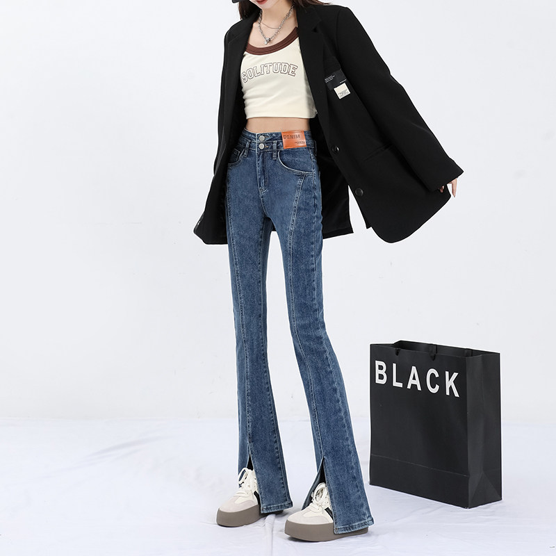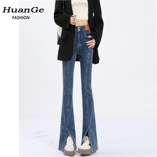 弹力微喇裤 加绒喇叭裤 小个子高腰修身 女秋冬2025新款 子 开叉牛仔裤