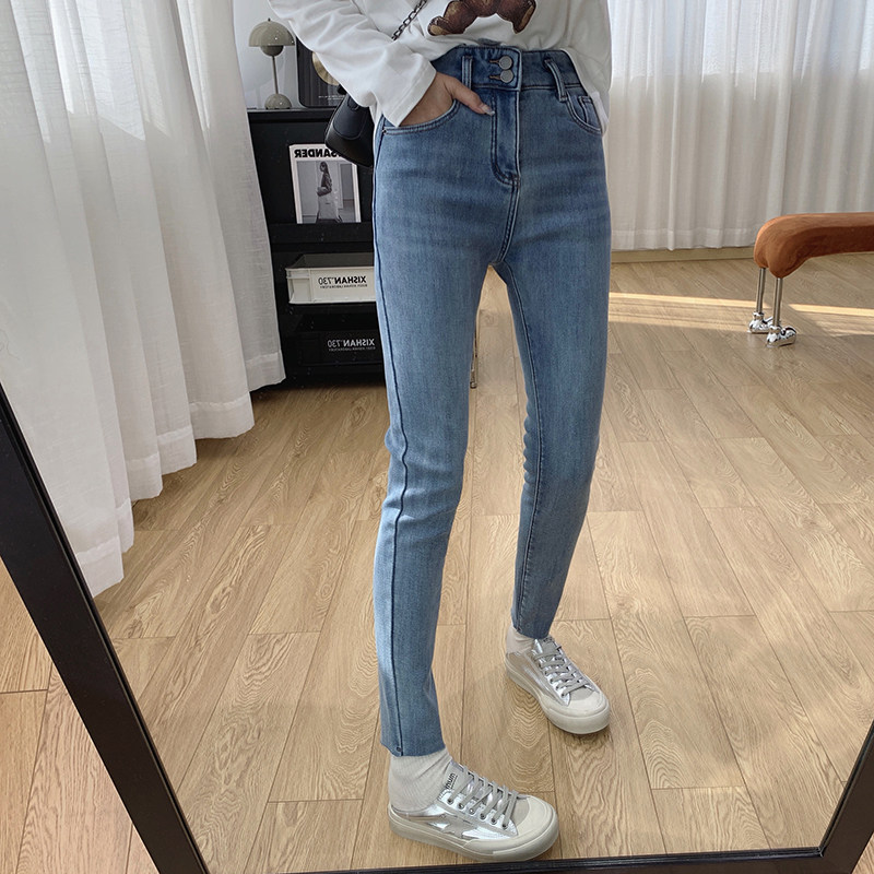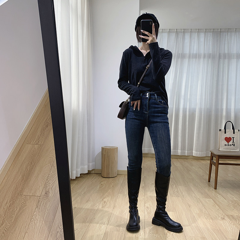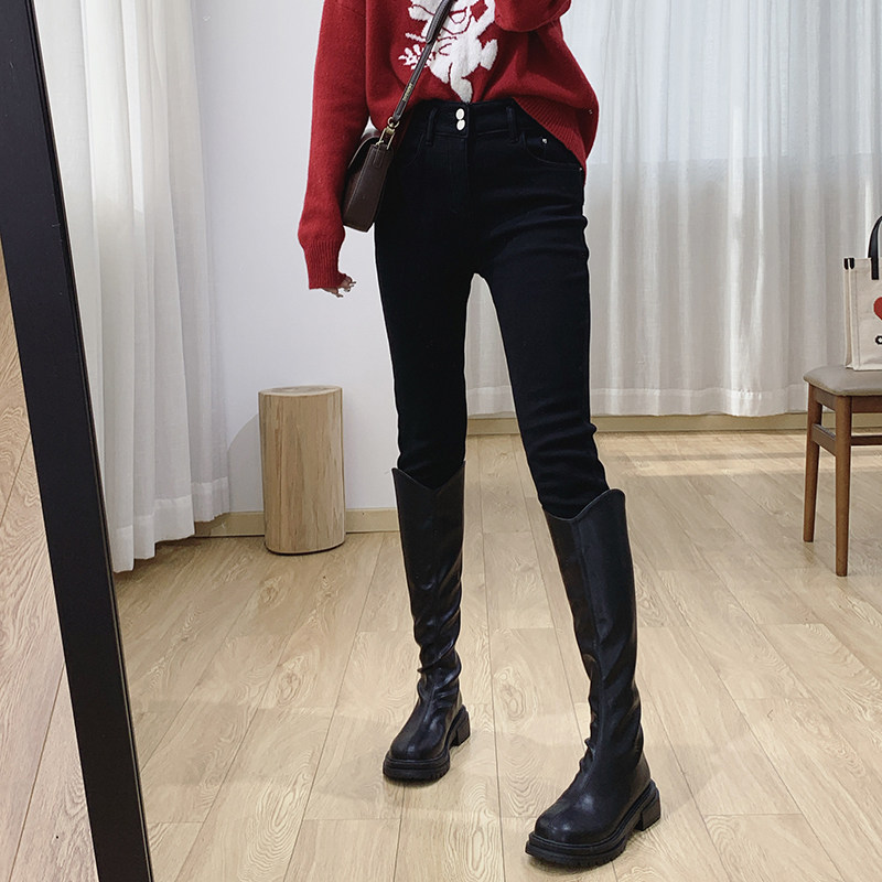 女冬季 百搭铅笔裤 靴裤 牛仔裤 冬 修身 水貂绒高腰显瘦加厚加绒小脚裤