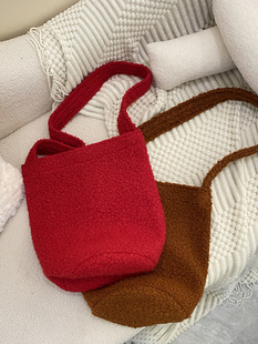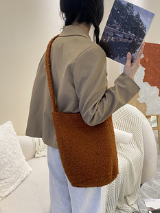 自制复古毛绒大容量水桶包包女百搭单肩包秋冬布袋小众休闲斜挎