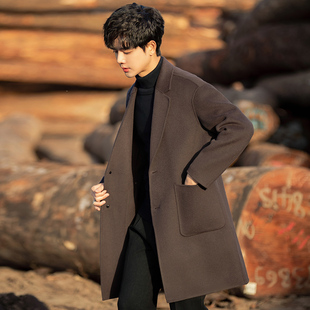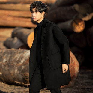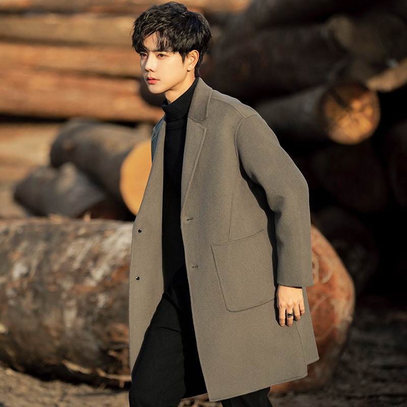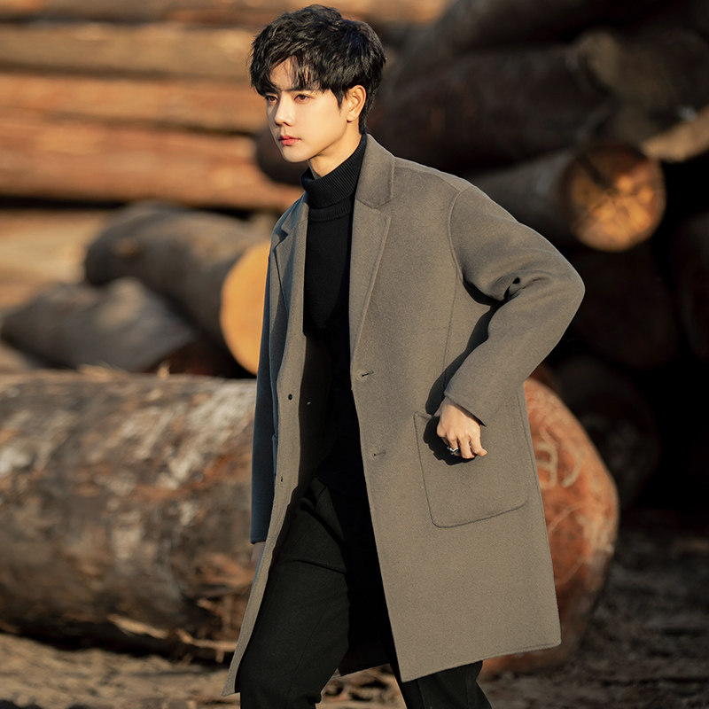西装 过膝双面羊绒外套 领毛呢子风衣 中长款 纯羊毛双面呢大衣男士