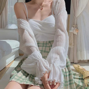 外套配吊带裙子外搭小披肩罩衫 雪纺防晒衣夏季 开衫 长袖 上衣女 薄款