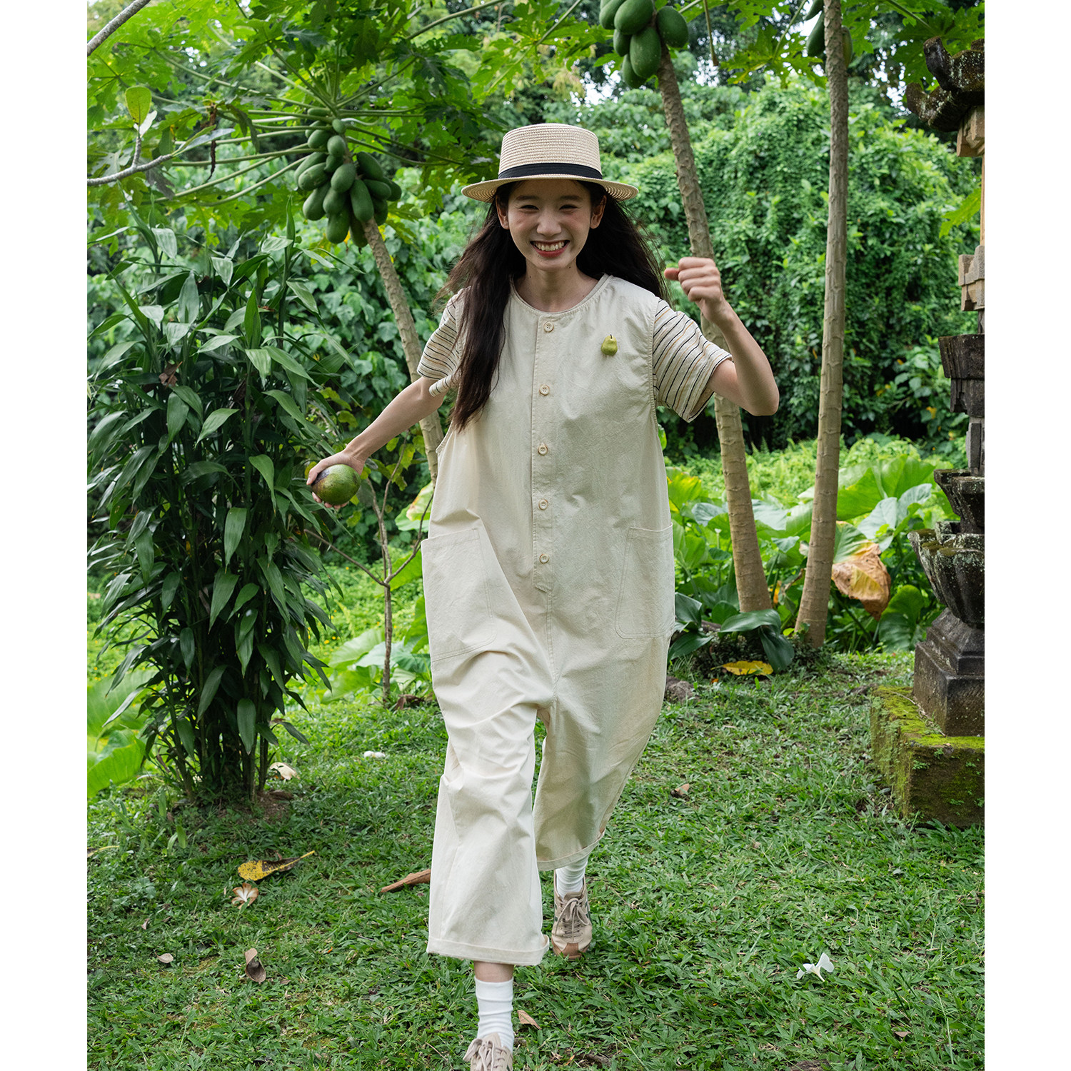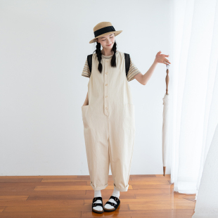 经典 文艺日系休闲裤 版 梨形h型秒变纸片人连体裤 子 型背带裤 古苔