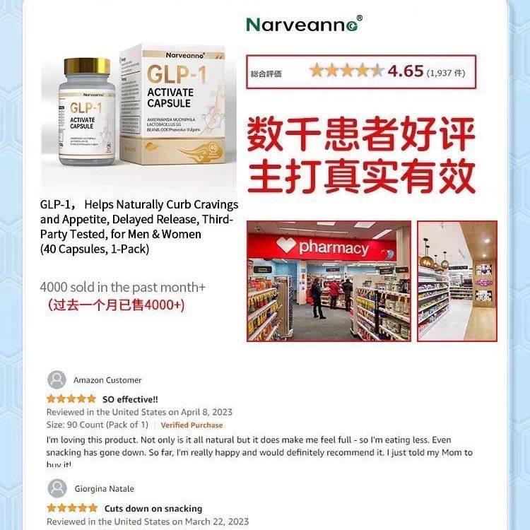 美国进口升级版 1口服片身材控制激活肽食欲阻断油碳控糖40粒c GLP