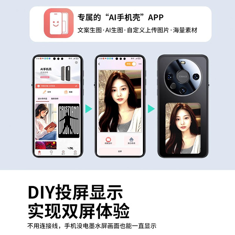 华为Mate60pro系列NFC投屏手机壳DIY四色高清墨水屏P70新款 小众风高级感无源智能AI手机壳保护套全包防摔