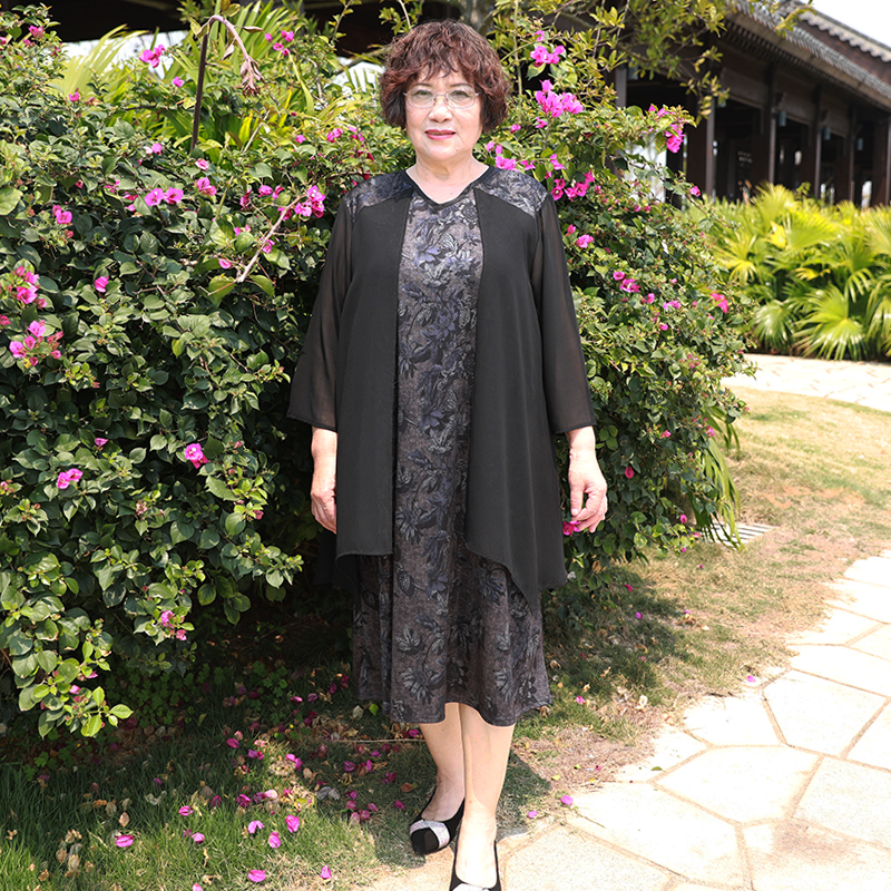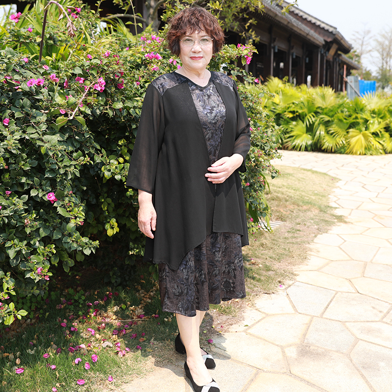 中长款 夏季 宽松遮肚显瘦假两件套开衫 胖妈妈装 裙子 连衣裙加肥大码