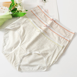 三福女中腰包臀内裤 504277 格雷系几何蕾丝花边透气半平角裤