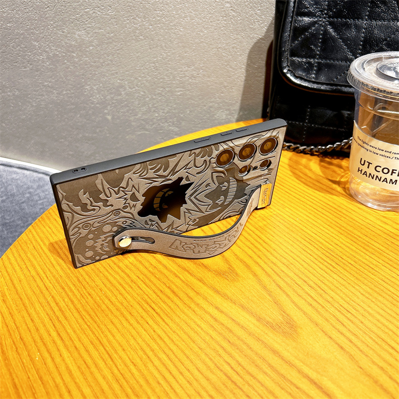 适用小三星GalaxyS22UltraS22u羊皮S24PLUS镭射耿鬼S23ultra腕带潮牌防摔爆款 24支架日韩是简约情侣商务卡通