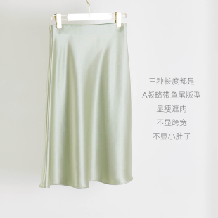 柠檬绿色松紧腰三醋酸半身裙女短中长款 减龄显瘦文艺清新鱼尾aA版