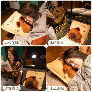 水豚抱枕被子两用加厚办公室靠枕折叠午睡枕头毯子二合一汽车靠垫