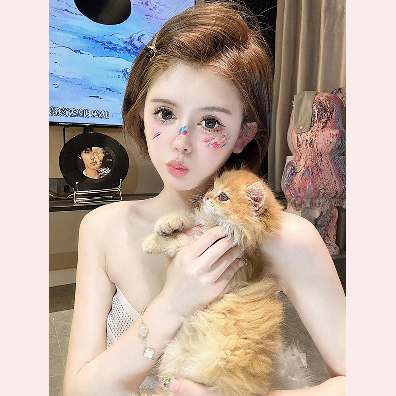 纯欲烫钻花朵交叉抹胸吊带背心女无袖 秋季 内搭上衣 TiTi美少女