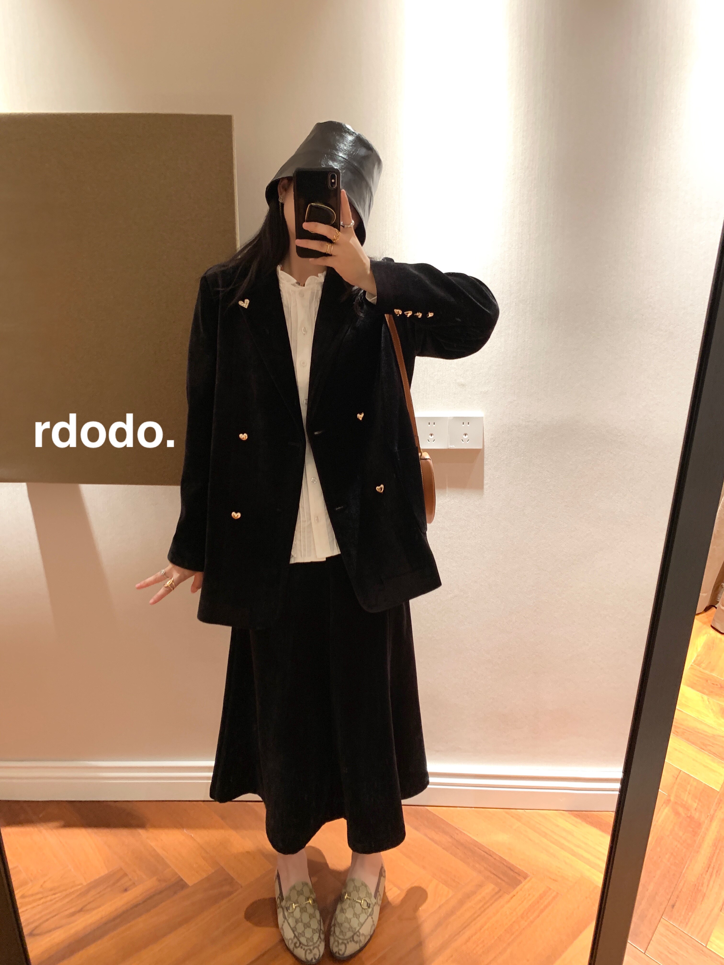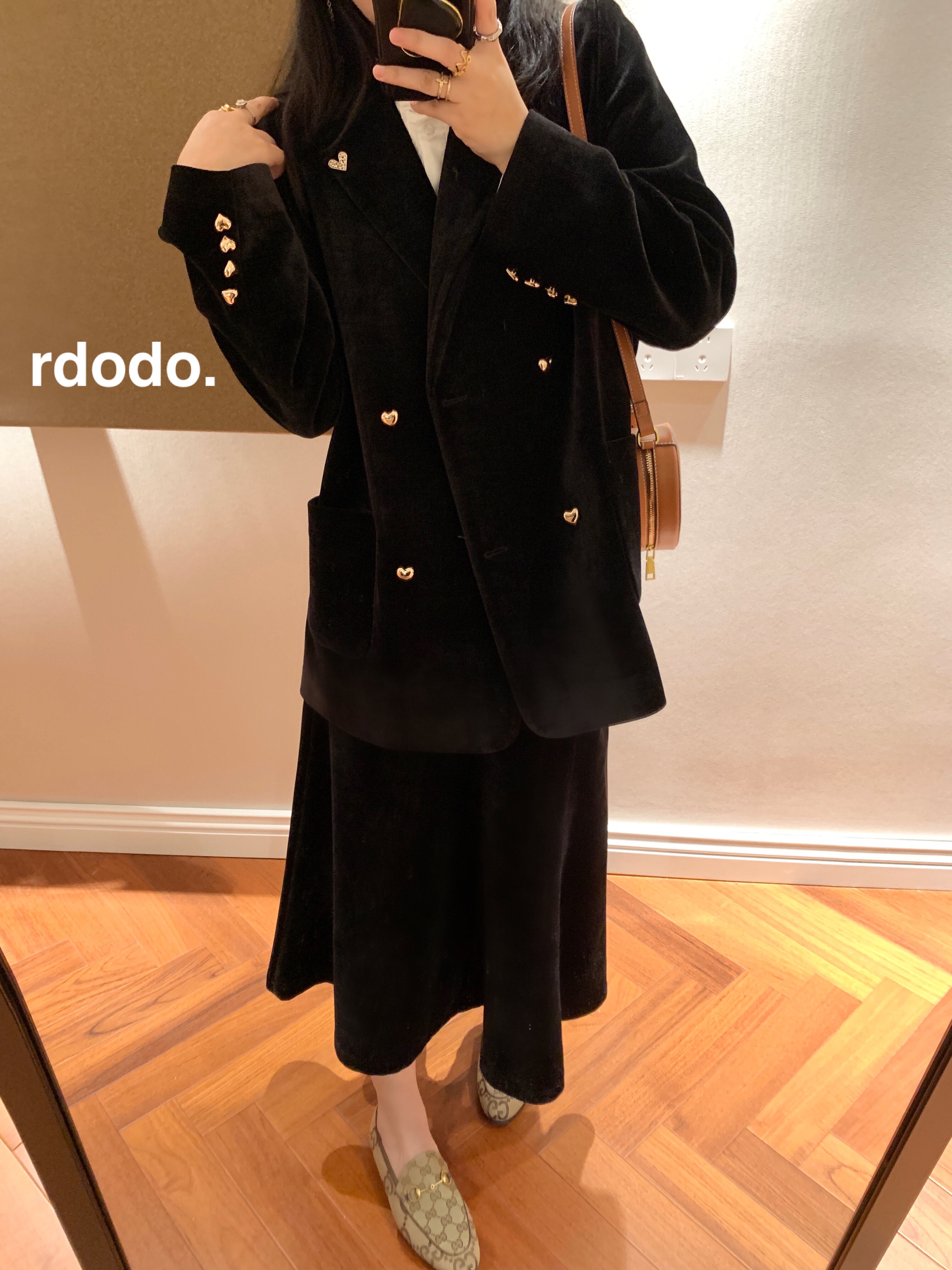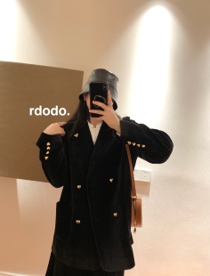 鱼尾半身裙套装 Rdodo自线金色爱心扣送胸针日本进口丝绒西装 外套