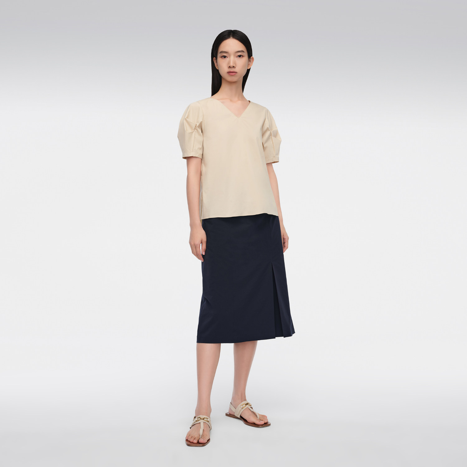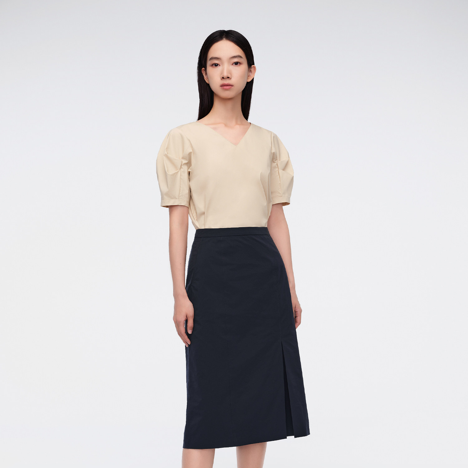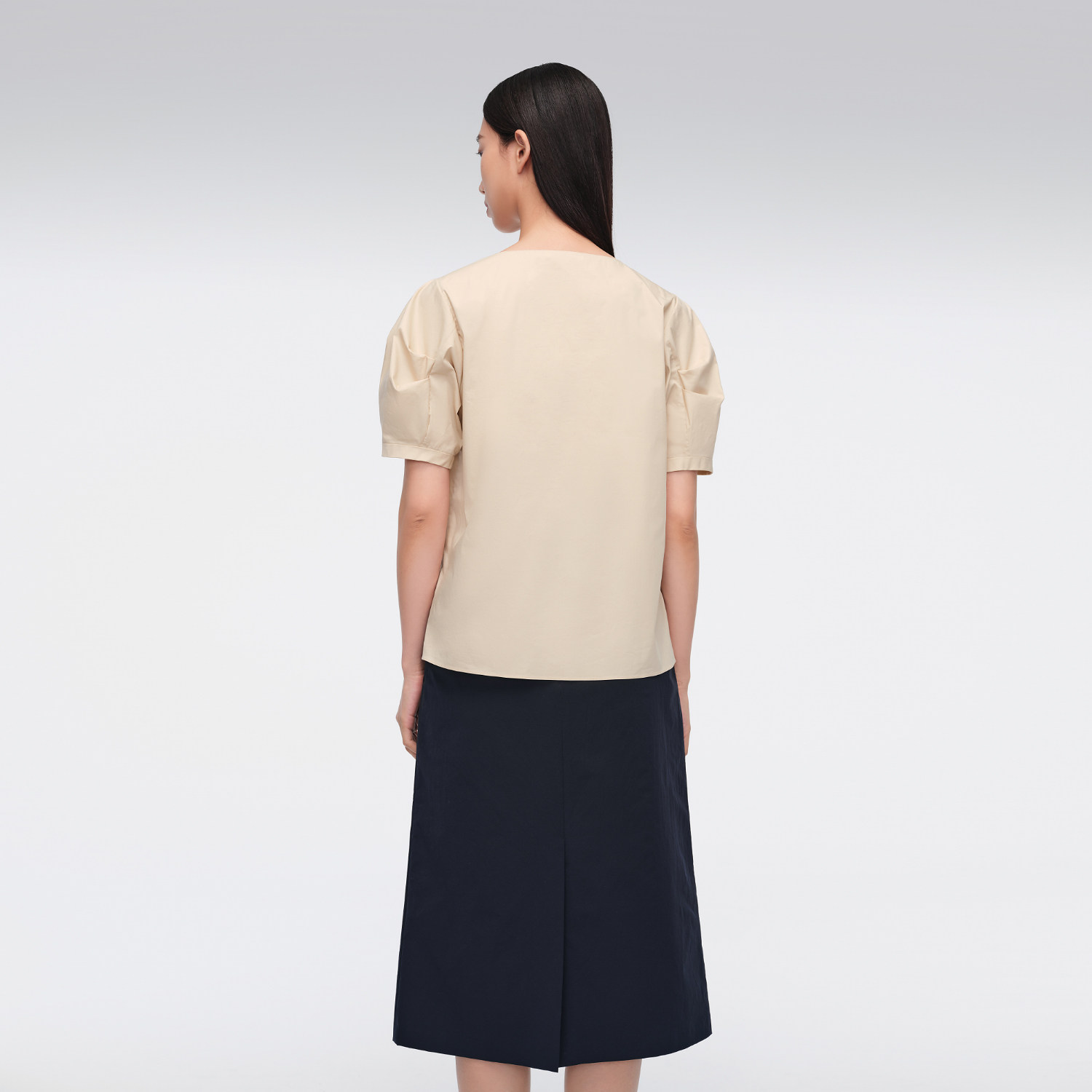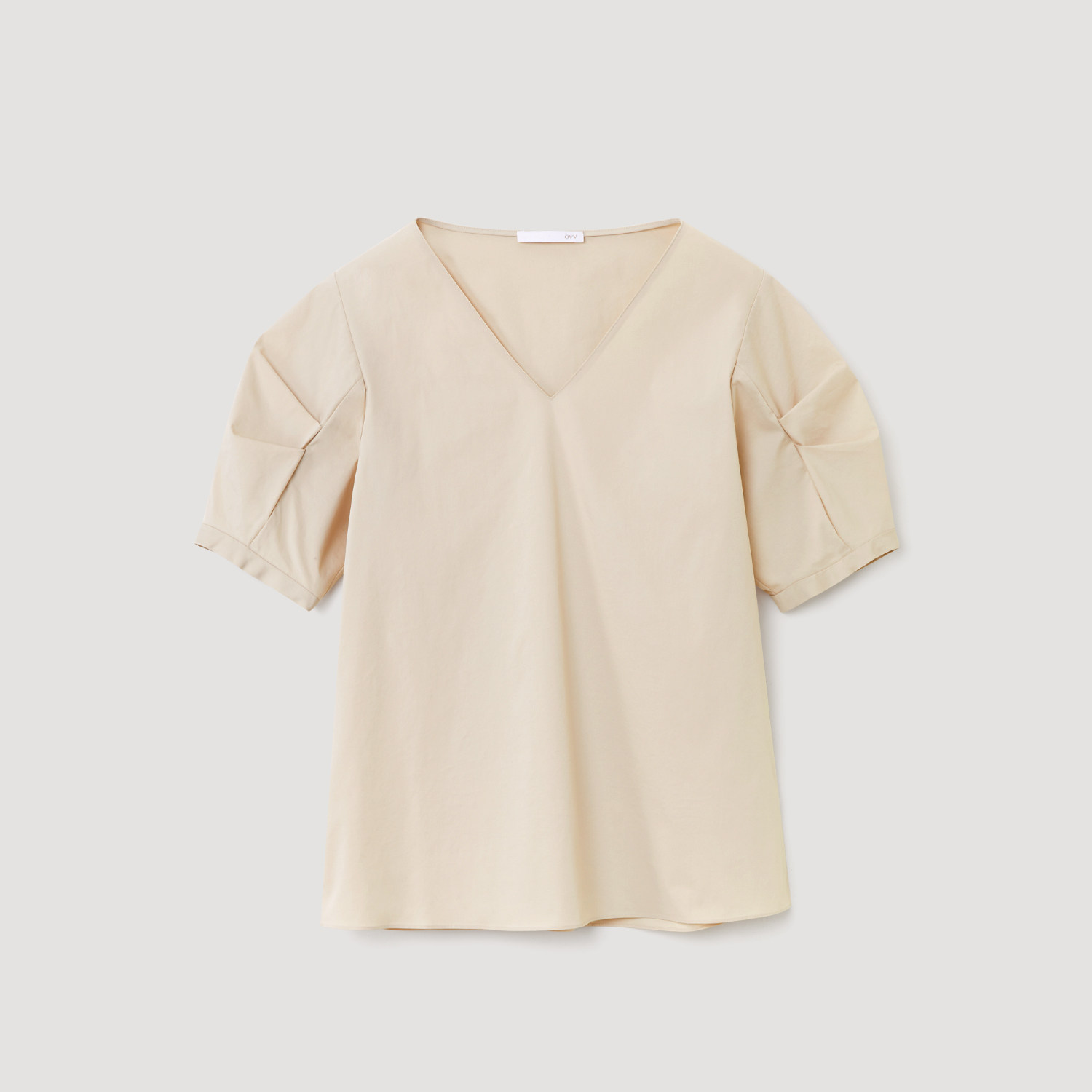 套头衫 OVV春夏热卖 短袖 空气洗匹马棉V领泡泡袖 上衣 女装