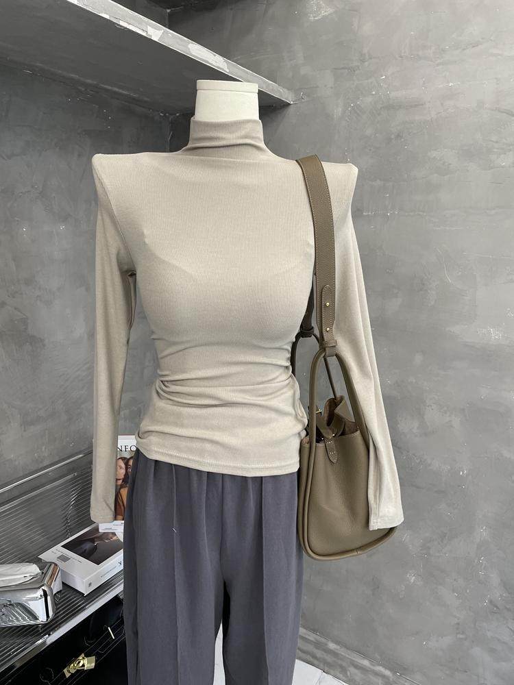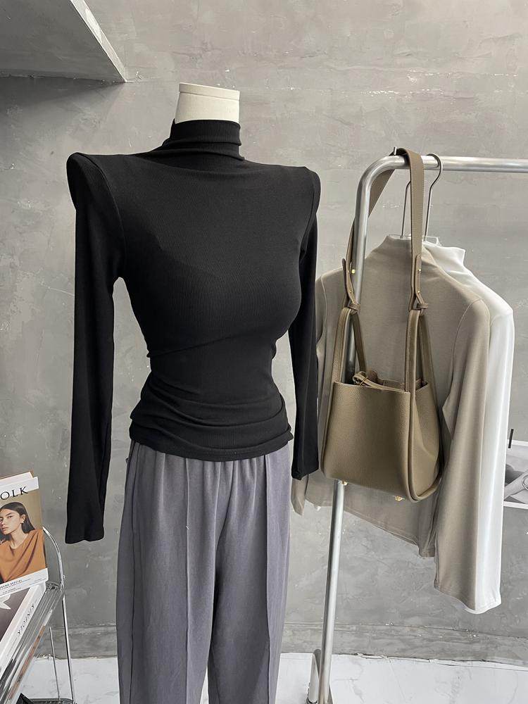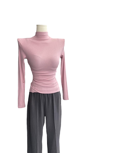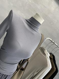 显瘦内搭上衣2024秋冬 T恤女螺纹修身 奶油粉~韩式 半高领打底长袖