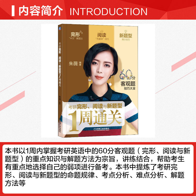编 研究生报考 机械工业出版 阅读与新题型1周通关 社 图书籍 朱薇 新华书店正版 考研完形 GRE文教