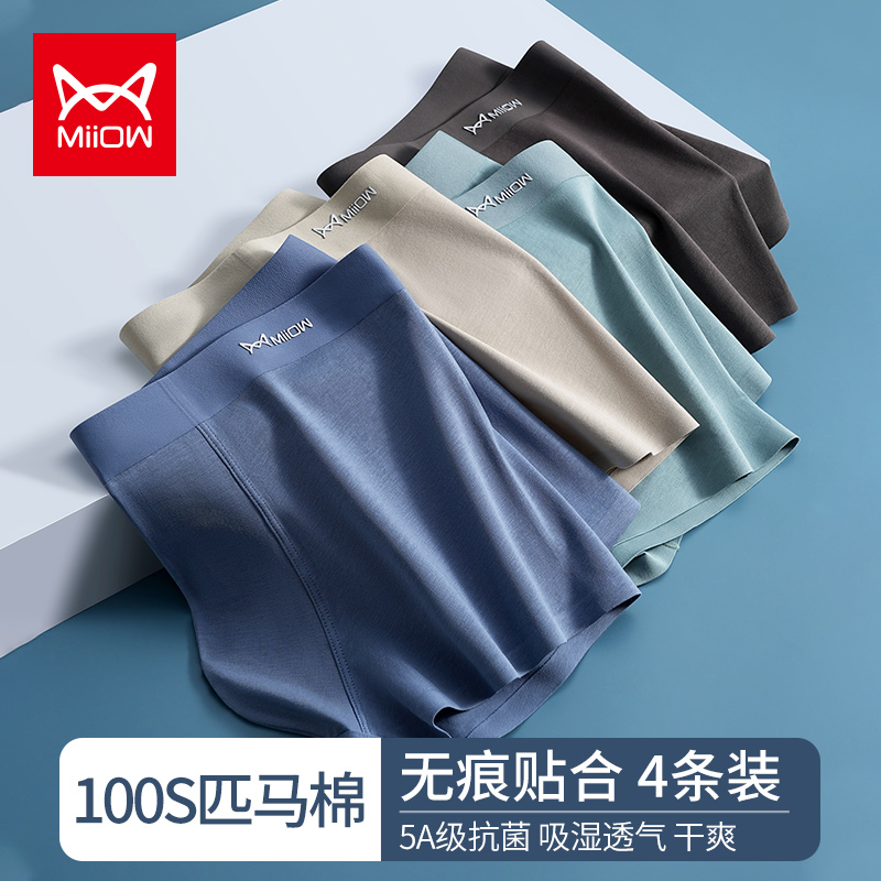 裤 猫人抗菌裆男士 运动纯棉裆平角大码 男冰丝无痕四角裤 青少年 内裤