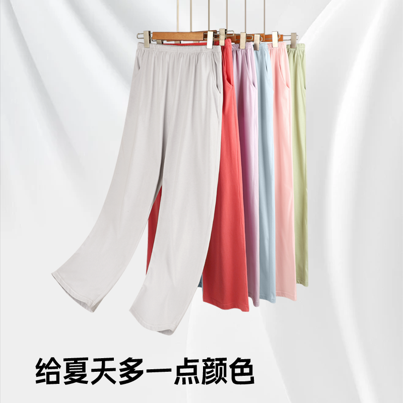 休闲居家中腰直筒纯棉7A抗菌通勤休闲长裤 女纯色修身 新款 2025夏季