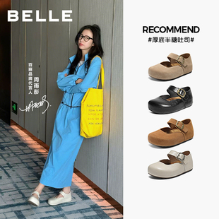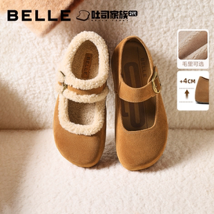 加绒毛毛鞋 子内增高冬季 预 百丽厚底半糖吐司2代勃肯鞋 周雨彤同款