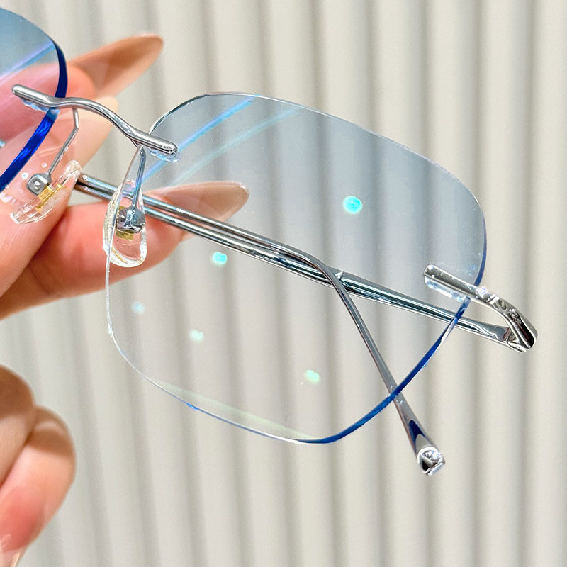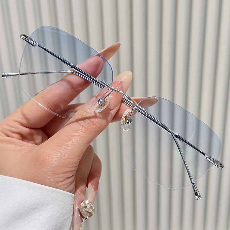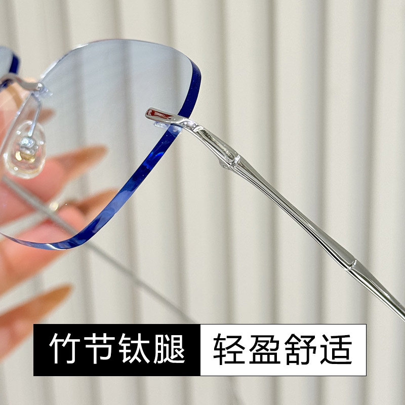 超轻纯钛无框近视眼镜男款 可配度数防蓝光变色高级感无边框眼睛女