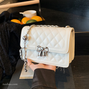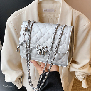 链条小方包 高级感斜挎包夏天流行爆款 菱格绣线小包包女式 2026新款