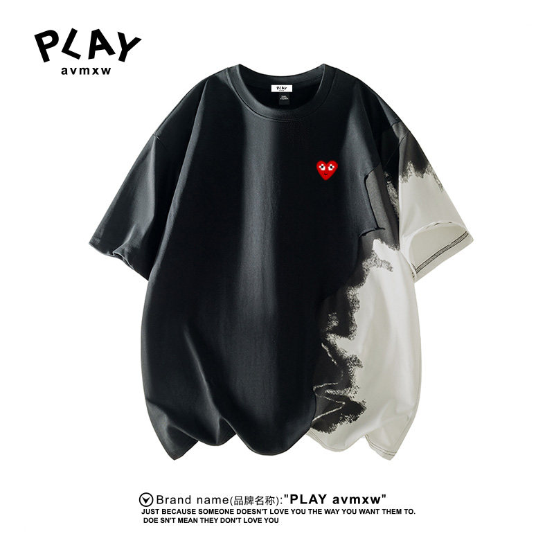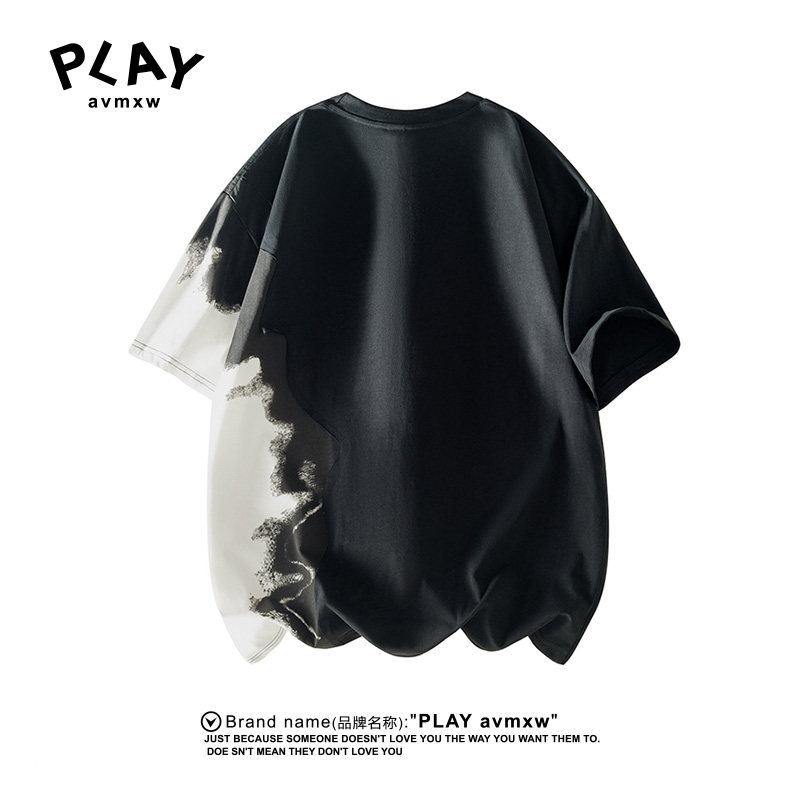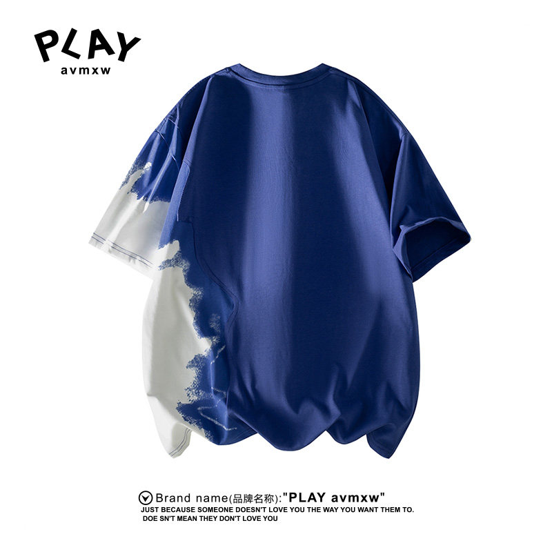 AVMXW 情侣同款 官方短袖 新款 休闲撞色拼接渐变T恤 2025年夏季 PLAY