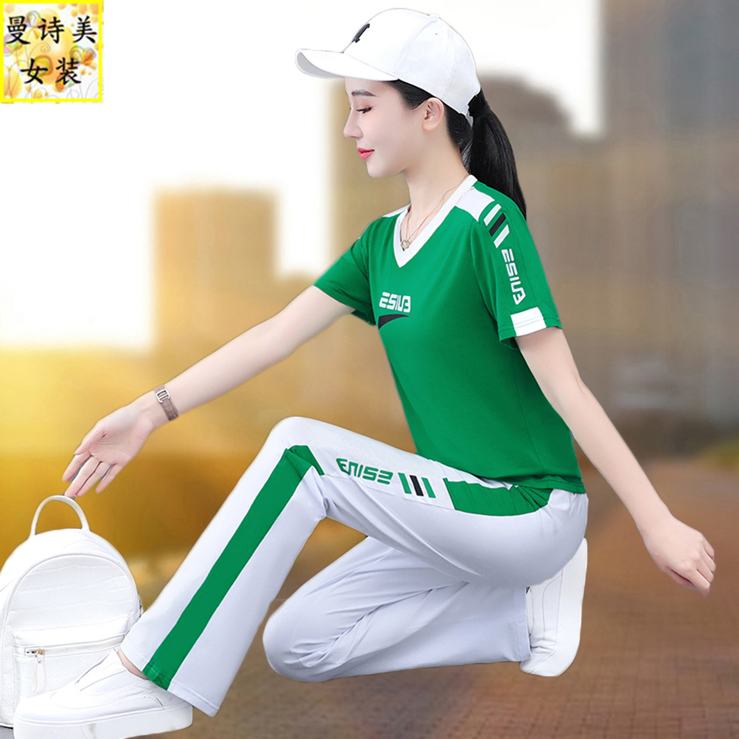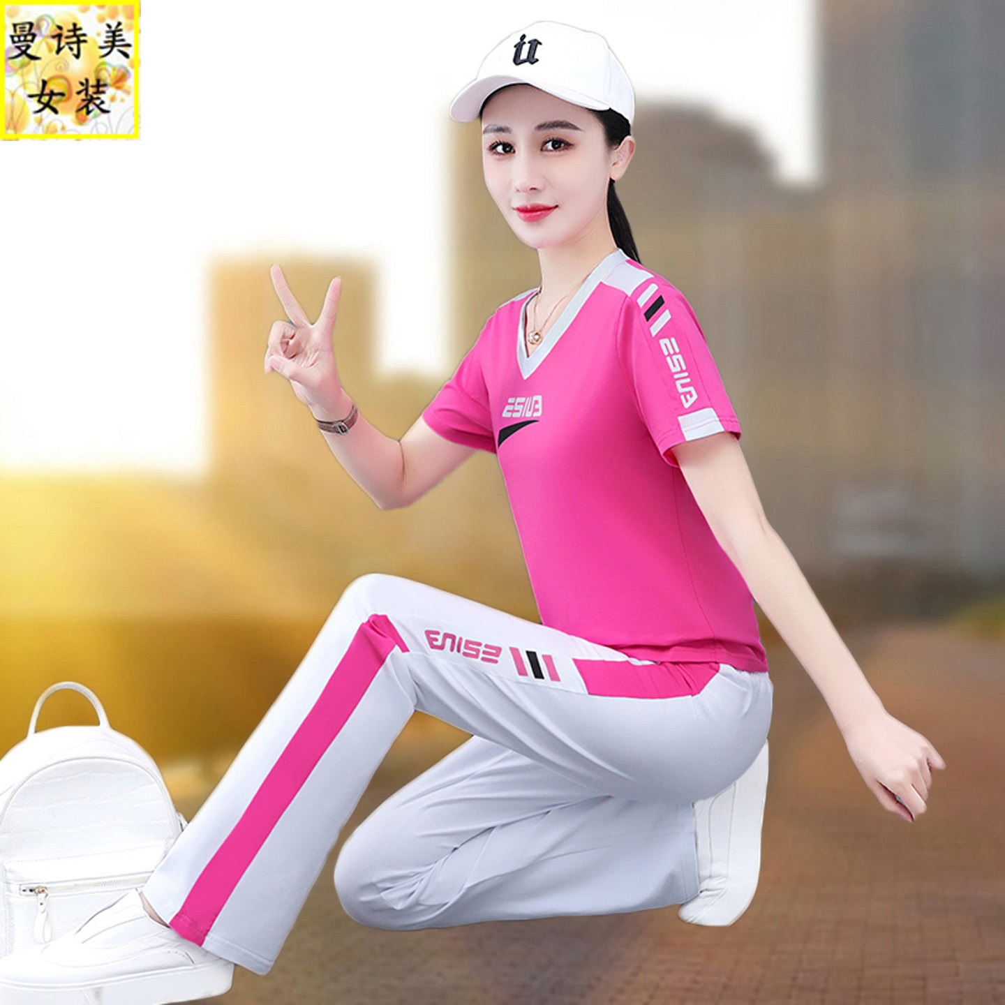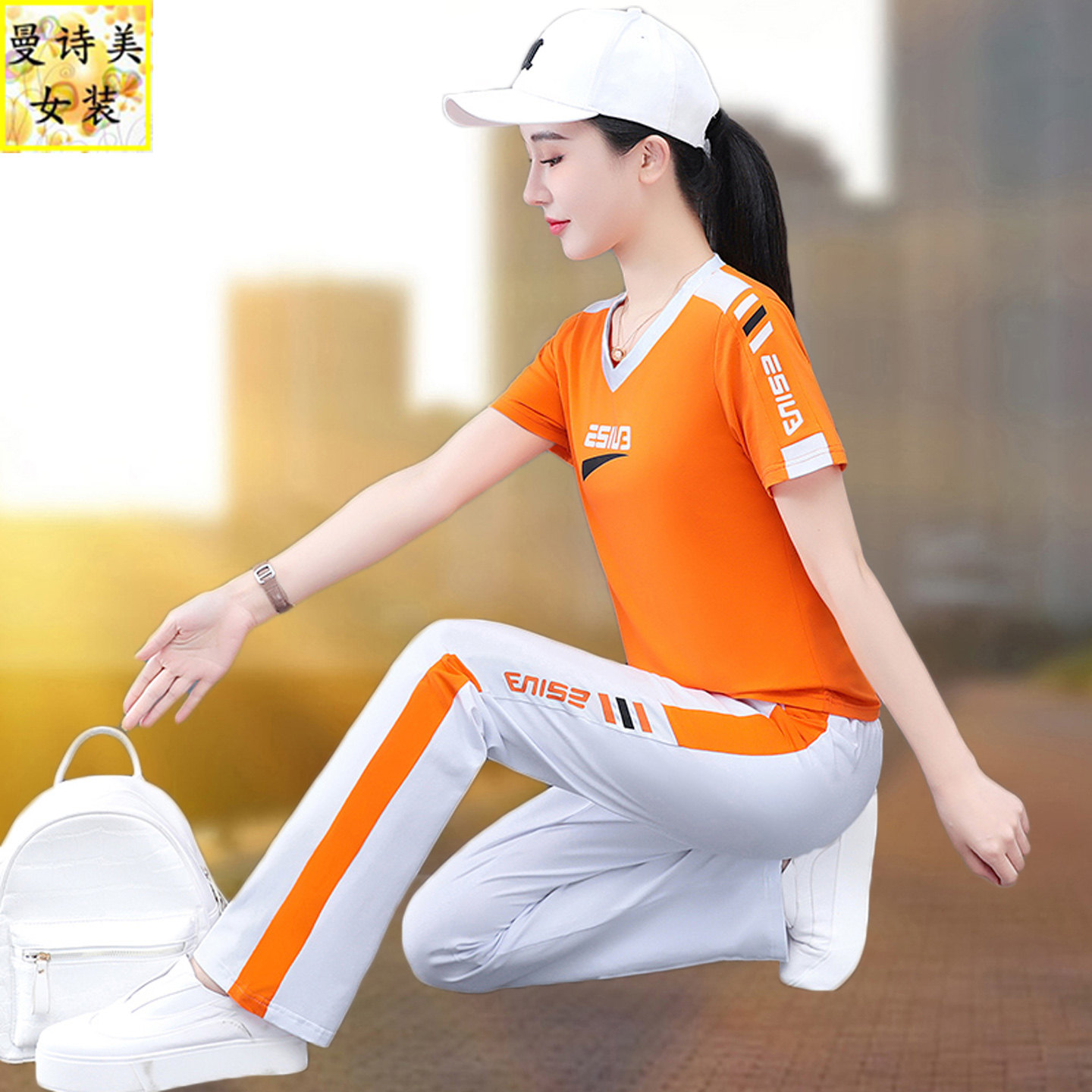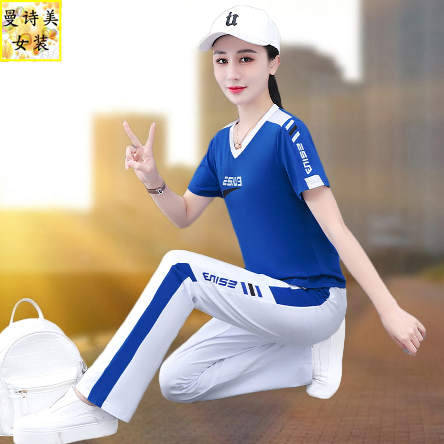 时尚 V领纯棉微喇叭裤 新款 女2026年夏季 洋气跳舞两件套 运动服套装
