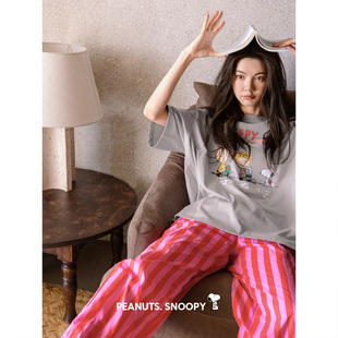 可爱少女大码 贝妍史努比睡衣女夏季 套装 长裤 凉感莫代尔棉短袖