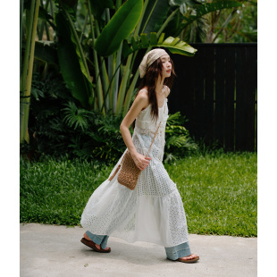 叠穿 蕾丝拼接白色吊带连衣裙度假风长裙开衫 2026夏季 波嬉风法式