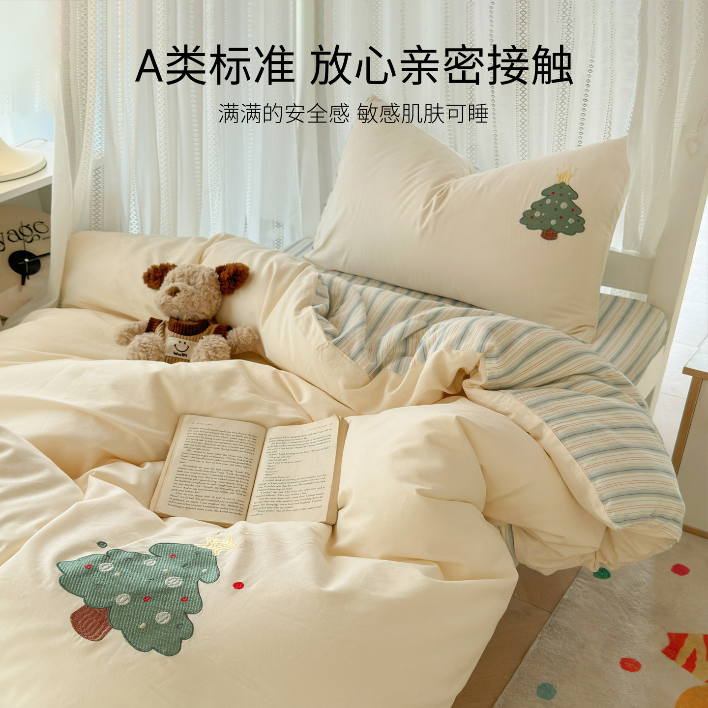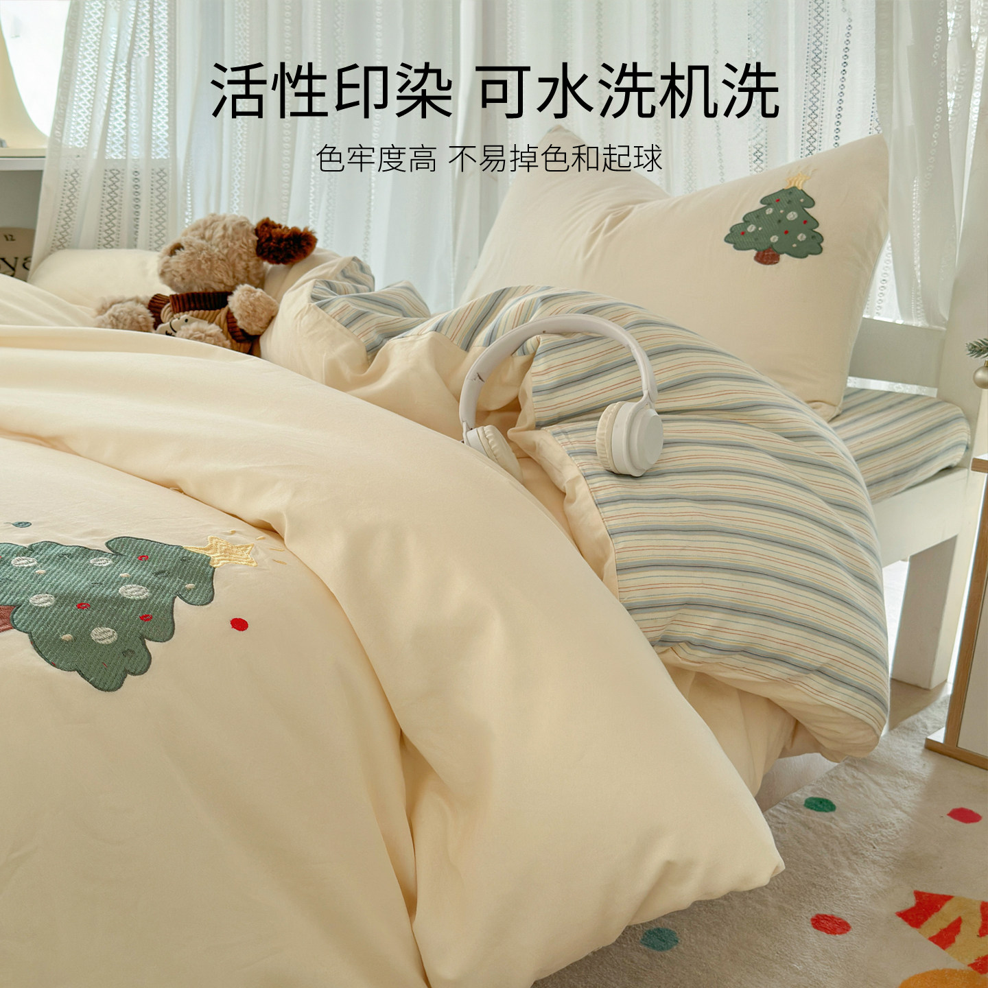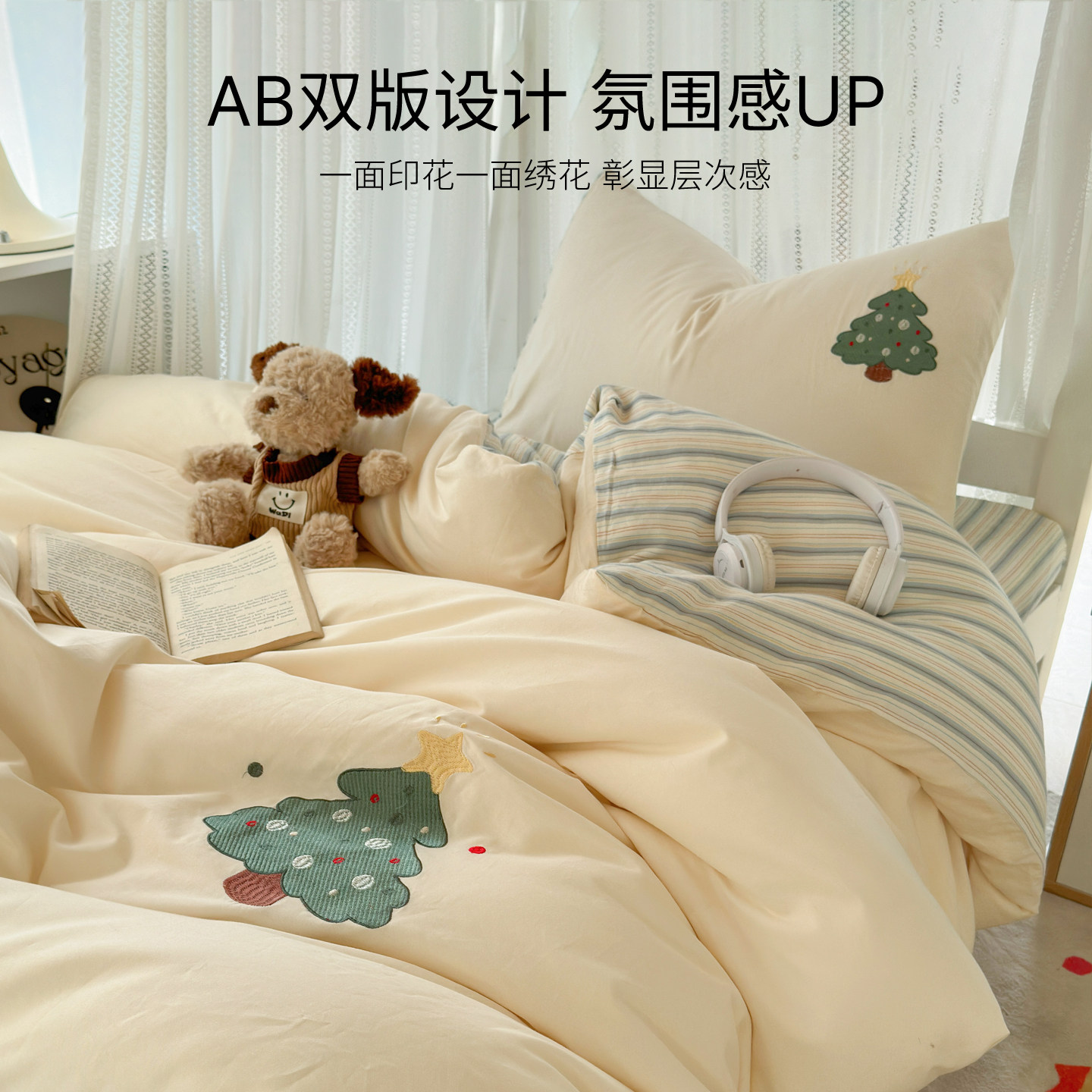 A类卡通圣诞树全棉双层纱宿舍三件套纯棉床单被罩套1米2床上用品3