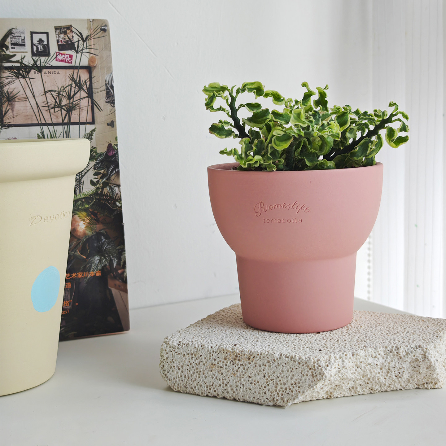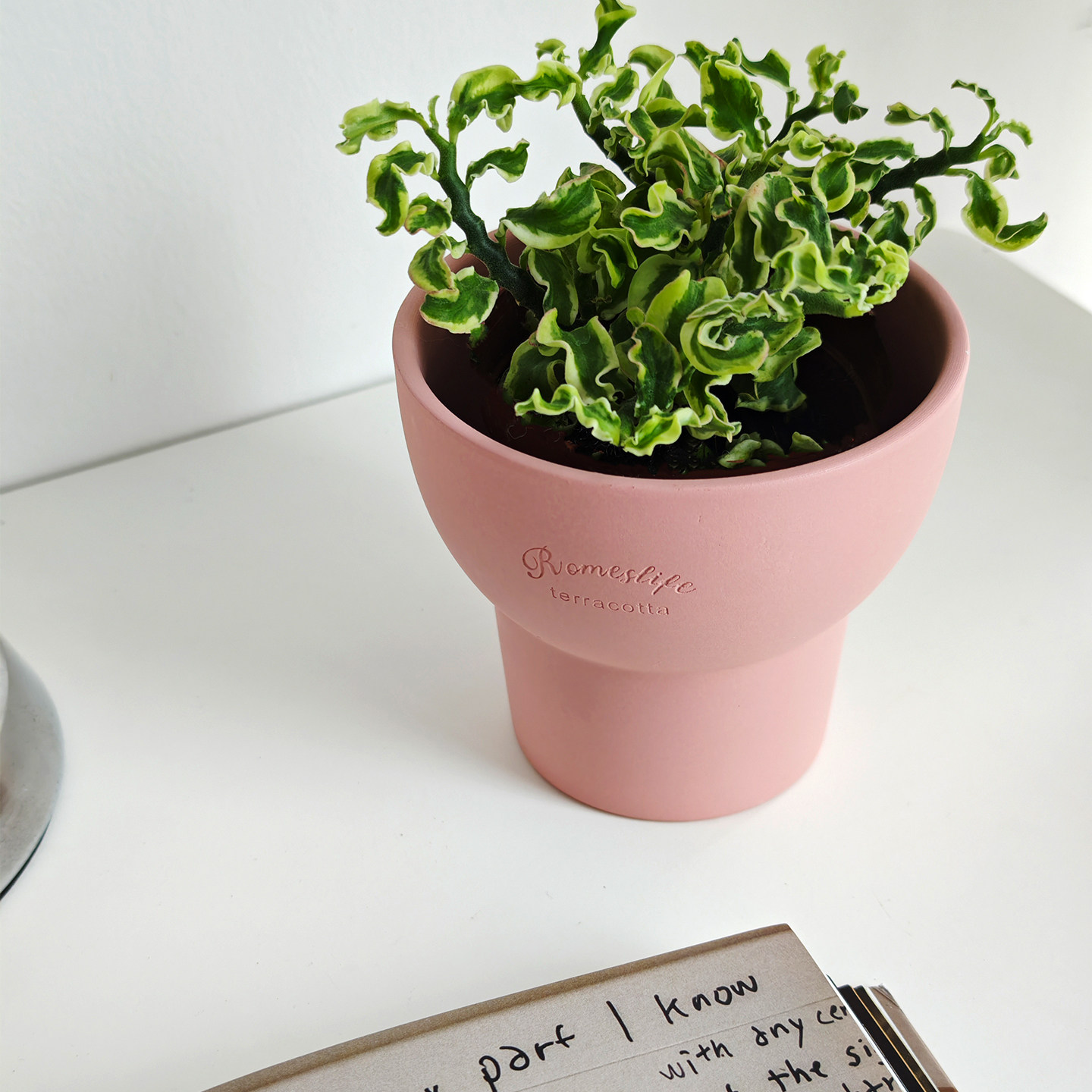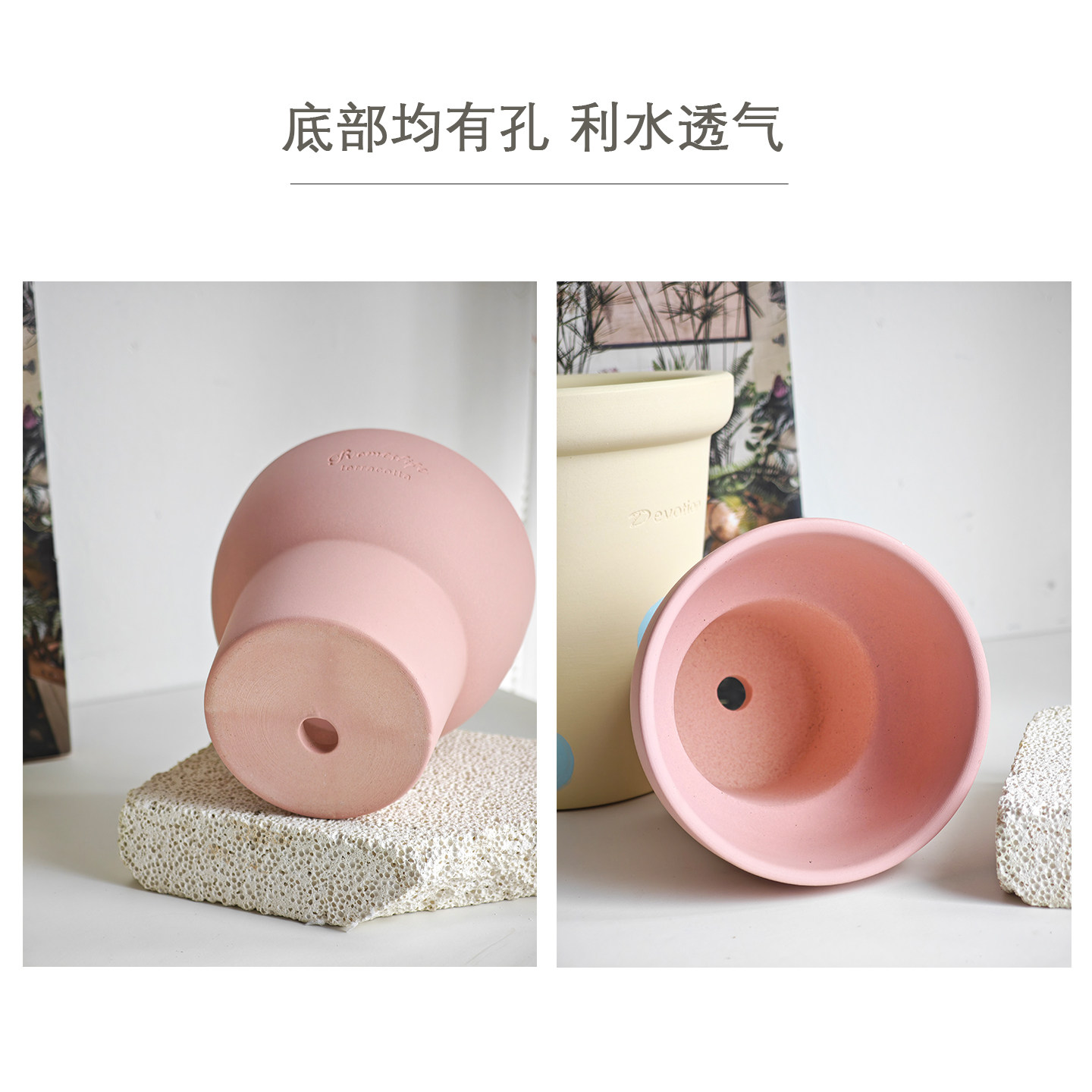 北欧简约粉色透气盆陶瓷素烧有孔圆形小花盆多肉植物盆栽陶盆桌面