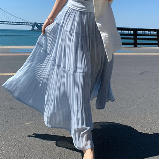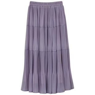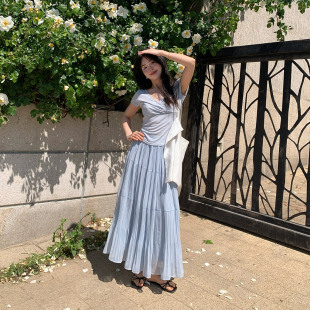 夏 T恤松紧腰压褶半身裙大摆长裙两件套装 一三良品小个子 收腰短袖