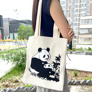 单肩针织包绿色可爱熊猫大容量手拎包上班族休闲百搭通用款 女包包