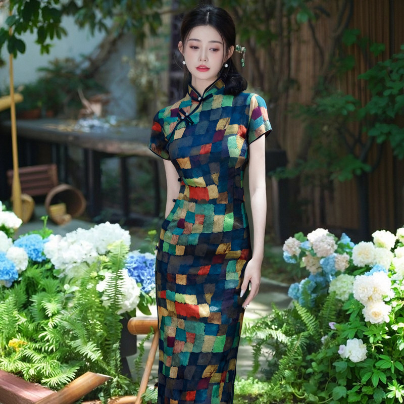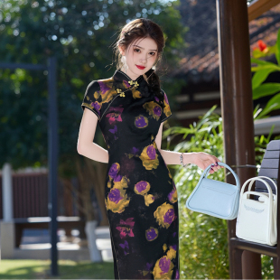 日常旗袍连衣裙 旗袍裙复古中国风短袖 高品夏款 改良侧八扣长款