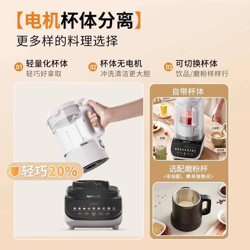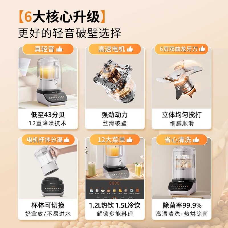 九阳破壁机榨汁机一体2025新款 轻音家用干湿两用研磨打粉机豆浆机