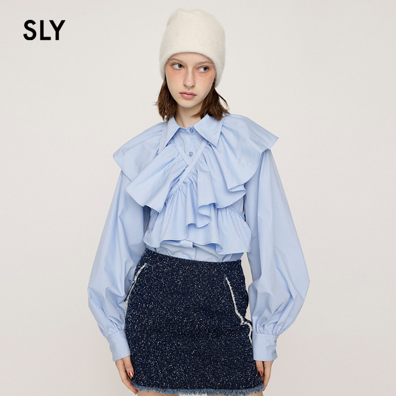 24冬季 女030HAR30 新品 优雅chic可拆卸荷叶边衬衫 2561 法式 SLY